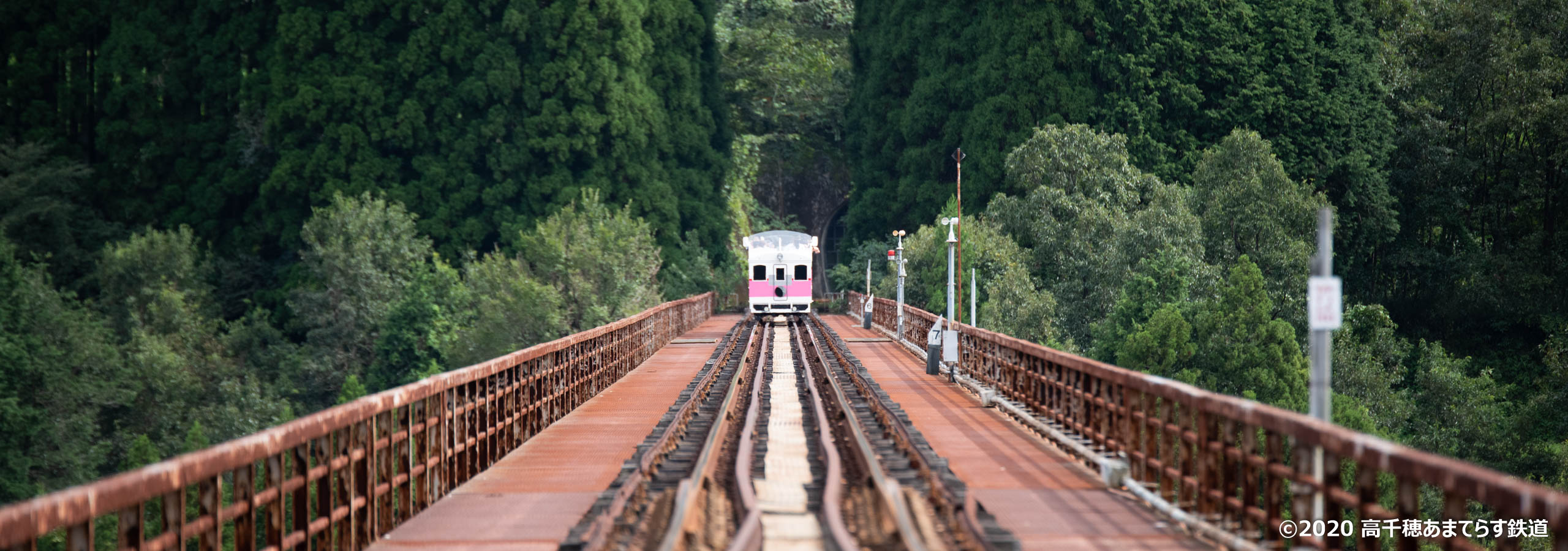 旧高千穂鉄道線の廃線跡を使用し、絶景アトラクションを運営する「高千穂あまてらす鉄道」。日本の鉄道としては最高の高さを誇った高千穂鉄橋からの景色はまさに絶景です。